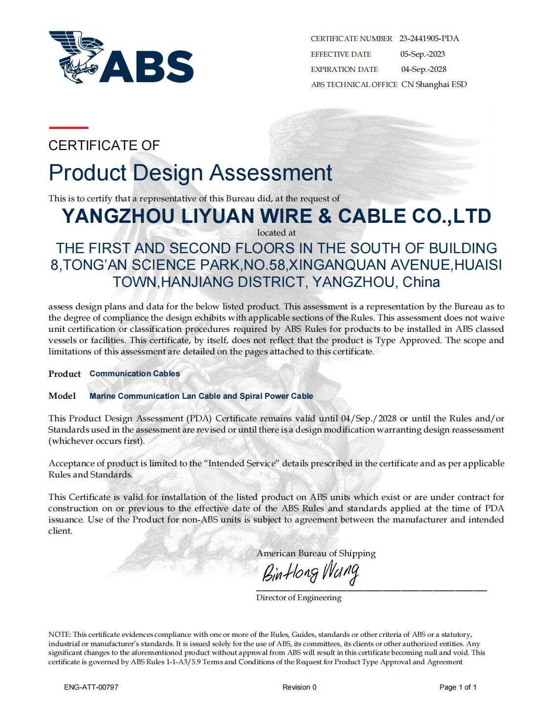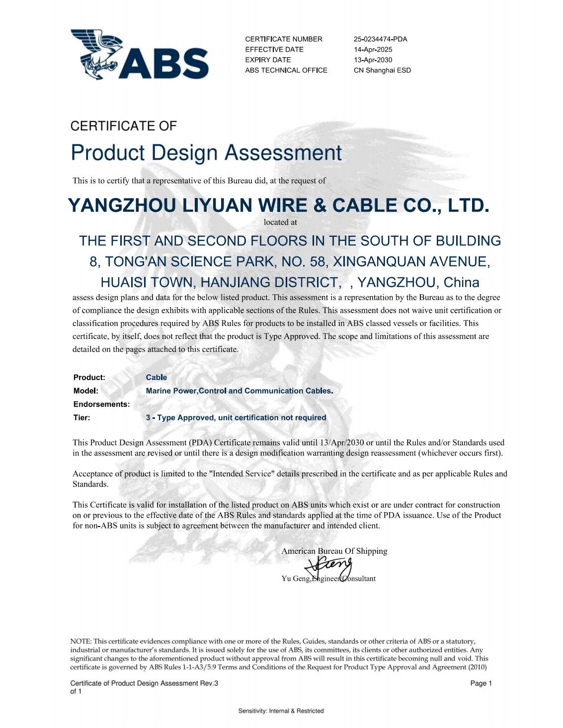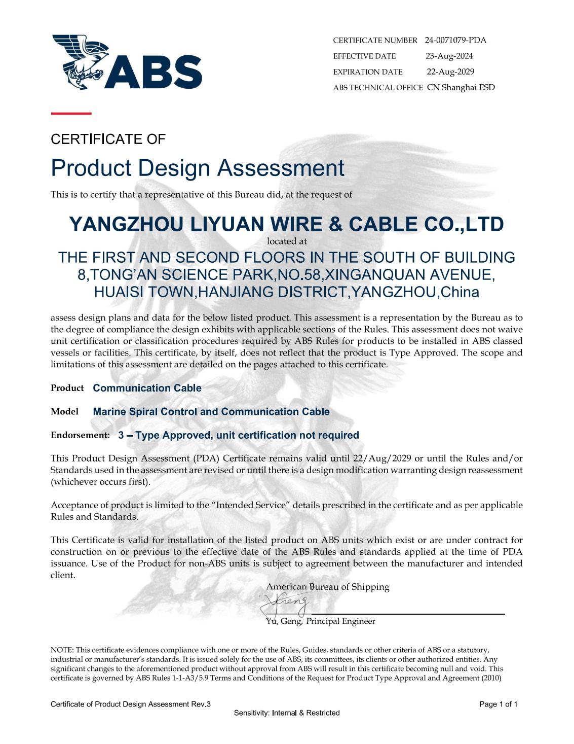 СЕРТИФИКАТ КЛАССИФИКАЦИОННОГО ОБЩЕСТВА LR
