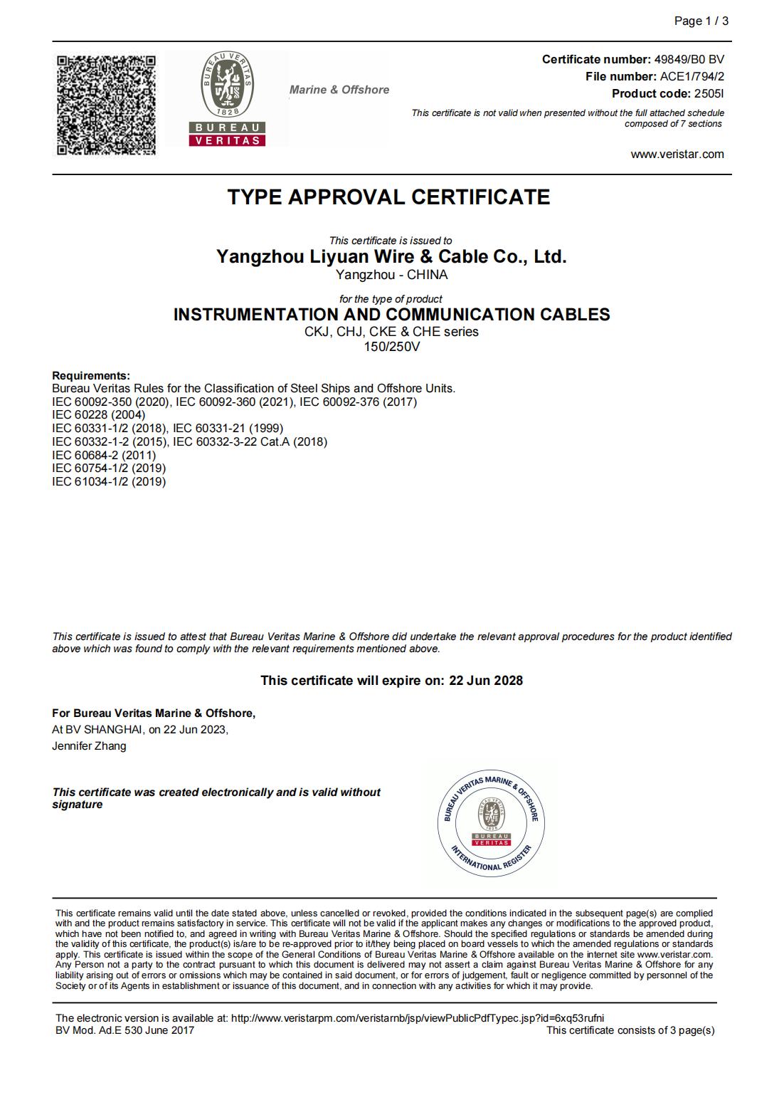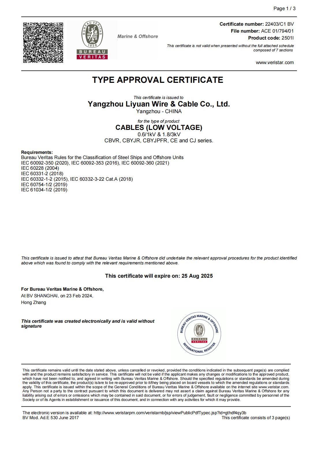 СЕРТИФИКАТ ОБЩЕСТВА КЛАССИФИКАЦИИ BV